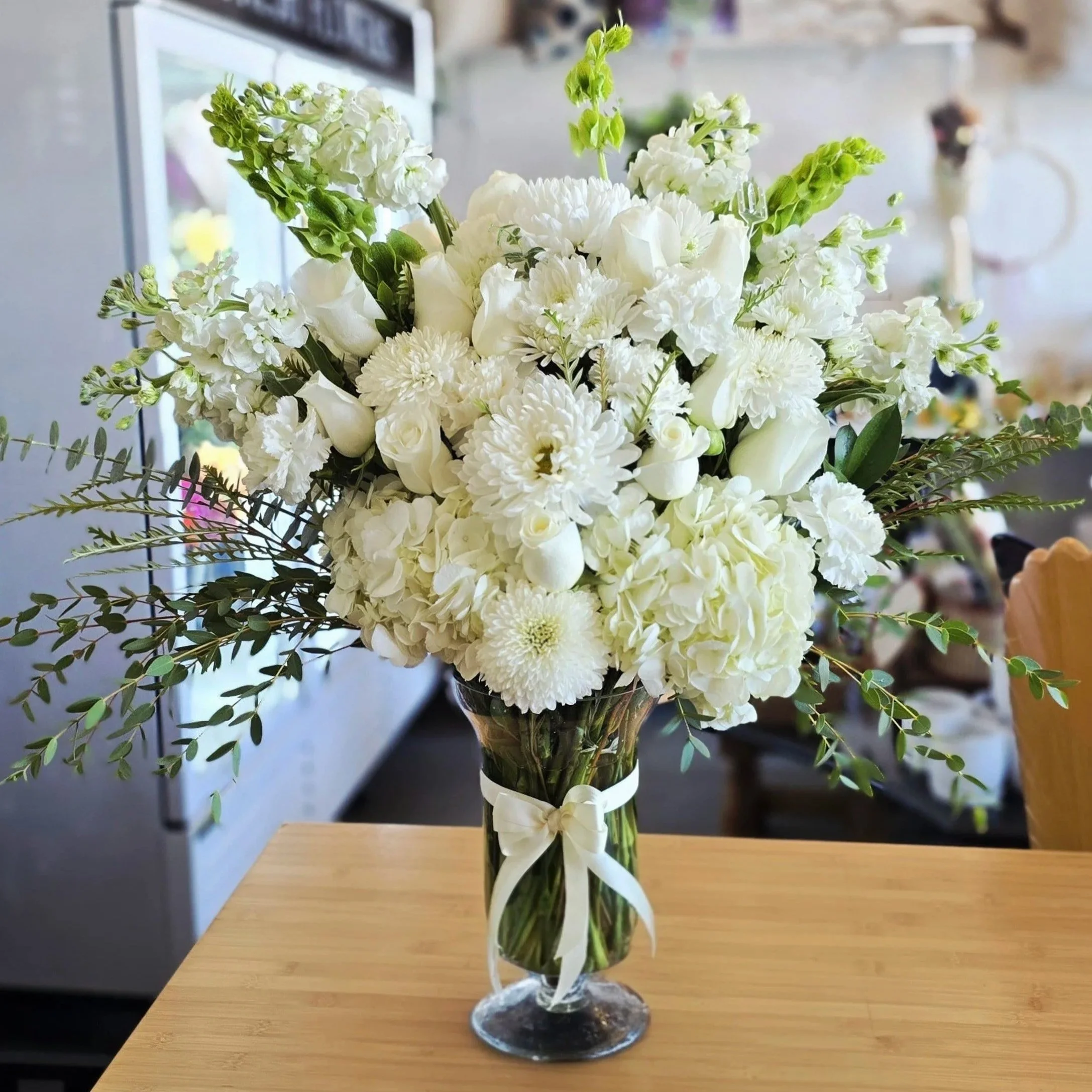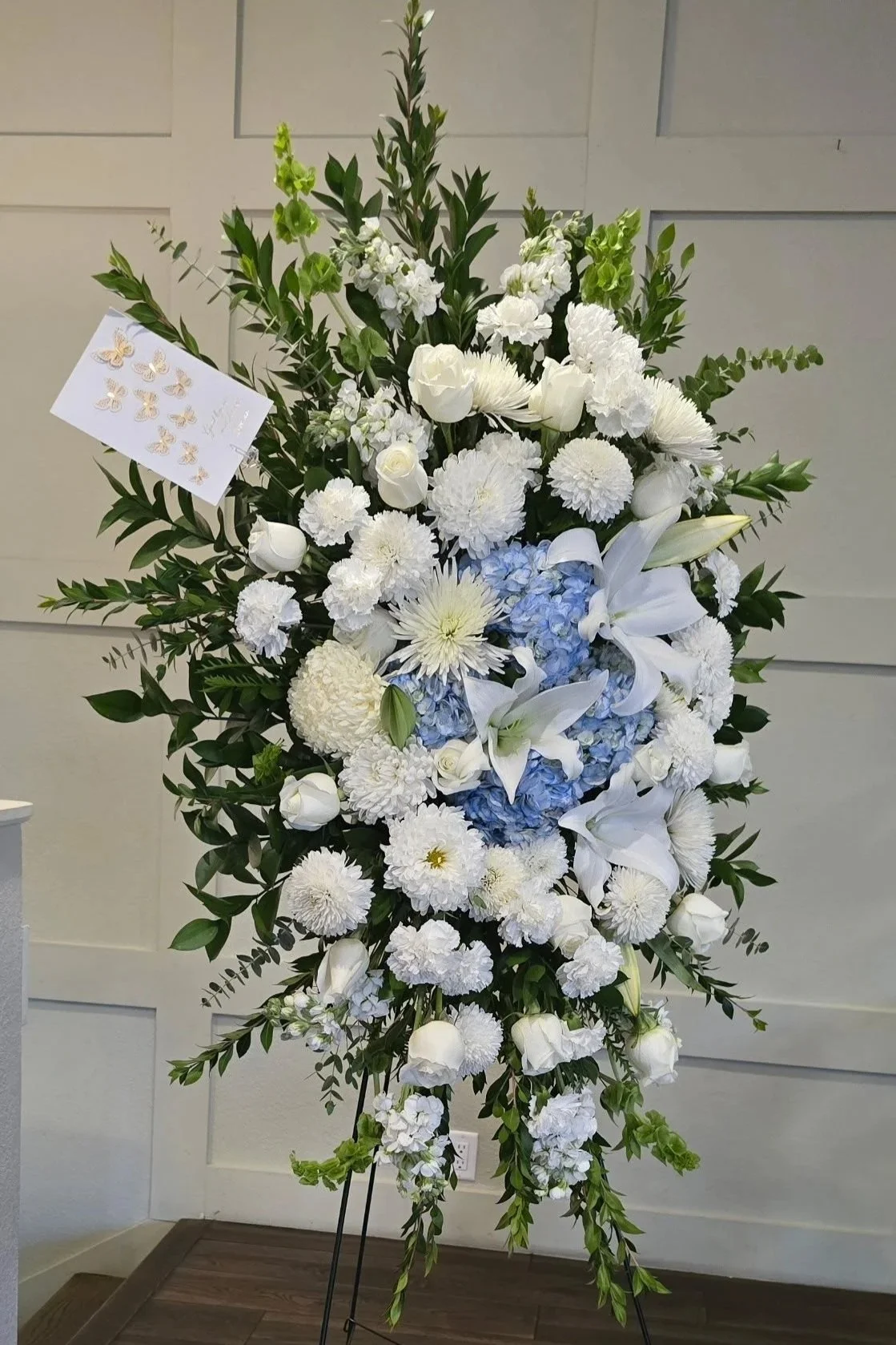 Please call us to get an idea of your desired arrangement look, color and size. To best support you in this time of grief.
